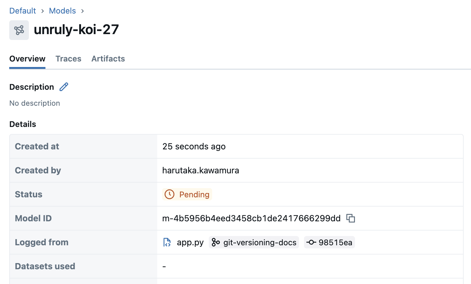 # This automatically creates/reuses a LoggedModel based on your Git state