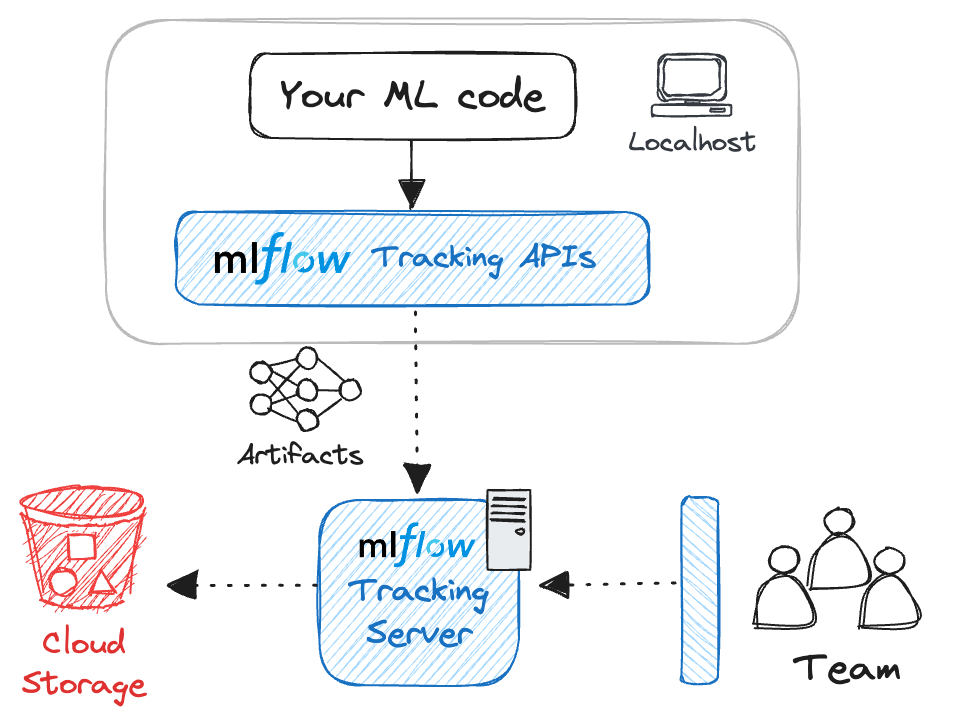MLflow Tracking supports many different scenarios for your development workflow. This section will guide you through how to set up the MLflow Tracking environment for your particular use case. From a bird's-eye view, the MLflow Tracking environment consists of the following components.