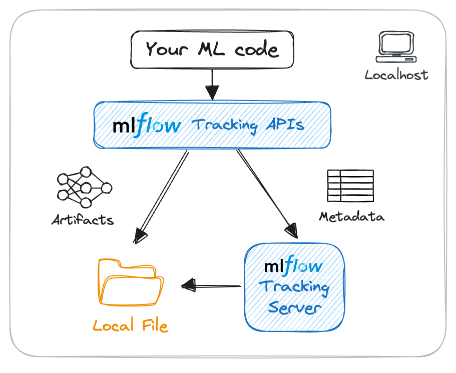 | 1. Localhost (default) | 2. Local Tracking with Local Database | 3. Remote Tracking with MLflow Tracking Server | |