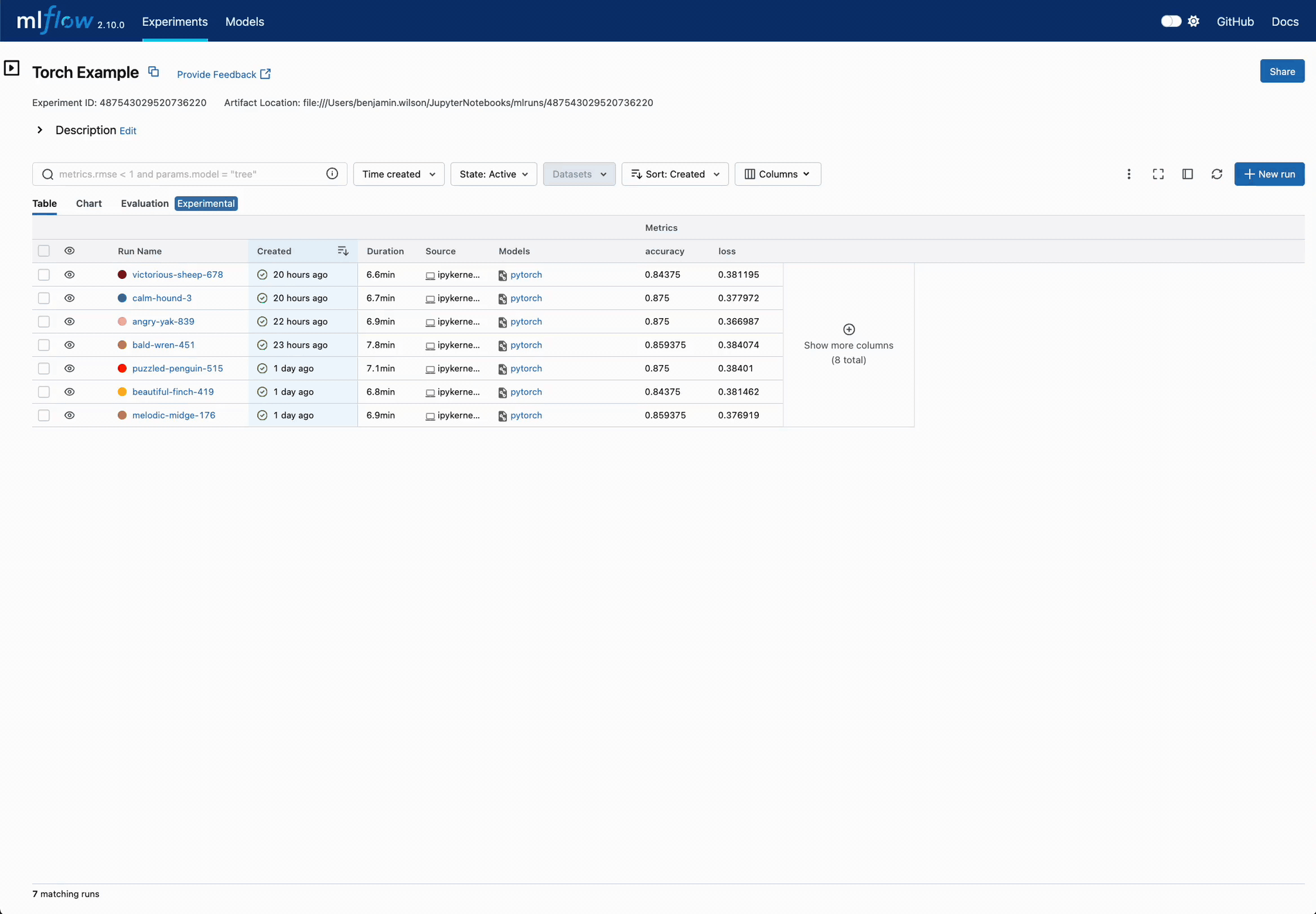 MLflow has native integrations with common deep learning libraries, such as PyTorch, Keras and Tensorflow, so you can plug MLflow into your workflow easily to elevate your deep learning projects.