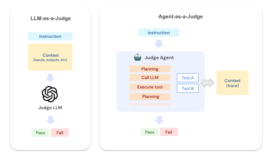 Agent-as-a-Judge represents a paradigm shift in LLM evaluation. Instead of simply assessing inputs and outputs, these judges act as autonomous agents equipped with tools to investigate your application's execution in depth.