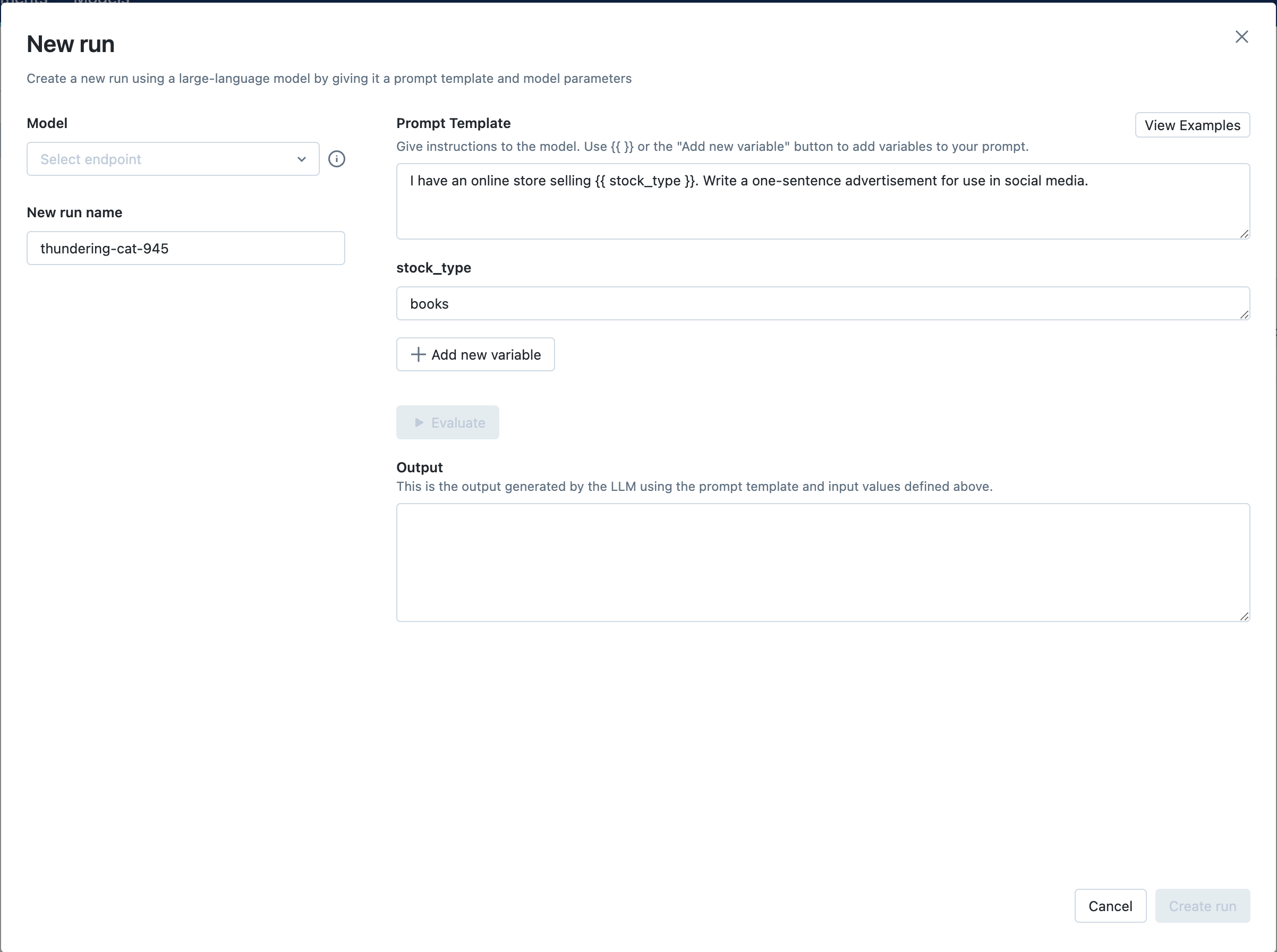 Step 4: Create a run with prompt engineering​
